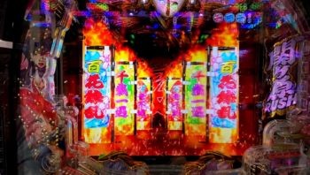 「CR 戦国乙女」シリーズの演出そのものを承継しています。いたるところで「赤」系が出ますが、あてになりません。信頼できるのは「赤」保留以上と「赤」テロップです。