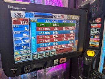本日の初当たりが、1回目が321回転で23連と、2回目が通常当たりもしくはSS RUSHチャレンジ、スルー、3回目が65回転で19連、4回目が129回転で2連、5回目が140回転で通常当たりもしくはSS RUSHチャレンジ、スルー、20回転で空いていました。
