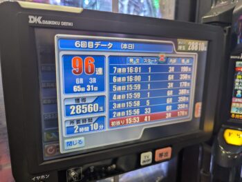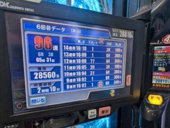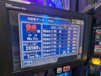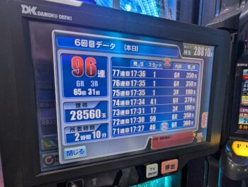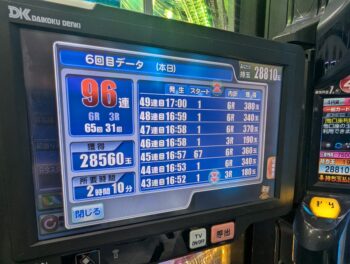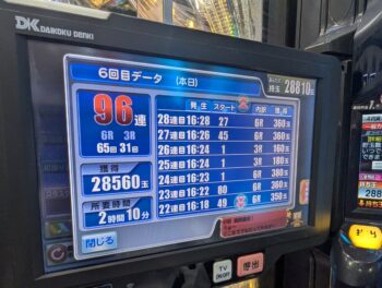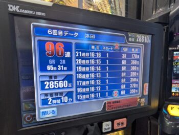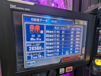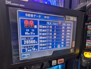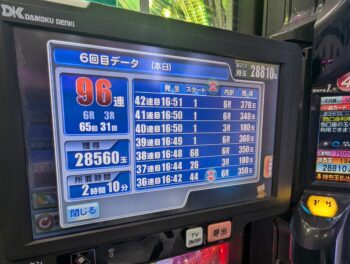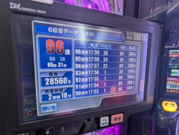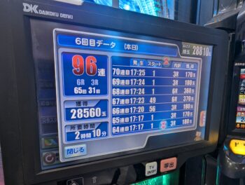 94連目は23回転、6R当たり。95連目は1回転、3R当たり。96連目は1回転、6R当たり。