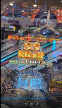 2連目は、何も起こらなので、保留消化してすぐ打ち出した1回転目で、先バレが入りました。安心できないのですが、AIR-VIBEが出て、6R当たりでした。SS RUSHに突入しました。