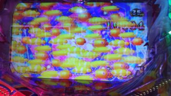 34連目は「NEXT LUKY」1回転で魚群➝「ヤッコ」3R「LUCKY」当たり。保留連の「NEXT MAX」表示がありました。