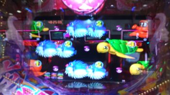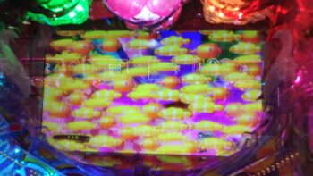 39連目は2回転「ハリセンボン」3R「LUKY」当たり。保留連の金魚群も出ました。