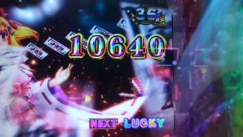 3連目は「NEXT LUKY」1回転で3R「LUCKY」当たり。4連目は2回転で3R「LUCKY」当たり。5連目は6回転で3R「LUCKY」当たり。6連目は2回転で3R「LUCKY」当たり。7連目は「ファイナルチャンス」の5回転で3R「LUCKY」当たり。8連目は3回転で3R「LUCKY」当たり。