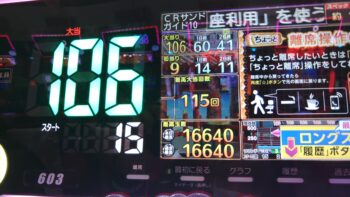 今回も少し捻りを入れてみました。保留連をしているときは「打ちっぱなし」でいいのは当然ですが、「NEXT LUKY」がなかったら、「大当たりラウンド後に全保留を消化して、BGMが消えて液晶画面上に光量、音量の表示が出てから、打ち出す。」打法、タイマーがあるので、タイマーにすると15~20秒経ったら打ち出しをするようにしました。