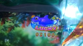 6連目は時短中の25回転で、右タテ「サメ」魚群+シロッコリーチ→「サメ」4R当たり。