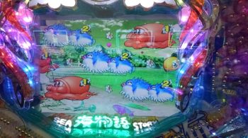 11連目は時短中の66回転で、「真珠」保留→「ヒトデ」+魚群+「タコ」×「ハリセンボン」+マリンリーチ→「ハリセンボン」4R当たり。