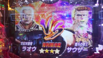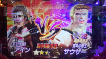 回らないのに我慢した投資、10.5Kの250回転で「遊タイム」に突入して411回転、南北頂上決戦中、北斗軍3人×南斗1人なのに負けて、ラウンド中、ラオウが勝って「南北大将決戦」に突入しました。