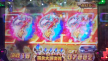 6連目は35回転、 バットVSカイオウ→BATTLE BONUS 10R 確変 当たりしました。