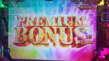 11連目は13回転、 「金」保留→「7」PREMIUM BONUS 10R 確変 当たりしました。