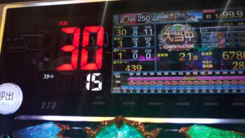 STの40回転をスルーすると厳しい展開にはなりますが、リーチもかからない状況だと、ハンドルから手を放して、全保留を消化して、BGMが消えるの再度打ち出します打ち出します。