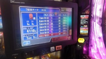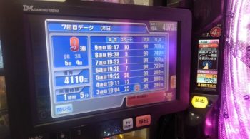 本日、1回目の初当りが、23回転で単発スルー。2回目が183回転で3連、3回目が255回で単発スルー、4回目が21回転で単発スルー、5回目が121回転で18連、6回目が157回転で7、54回転の台でした。