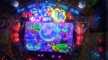 8連目は36回転、ロゴフラッシュ+「ハリセンボン」×「カメ」+泡の中に「クジラッキー」+ノーマルリーチ→「カメ」5R確変当たり。