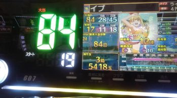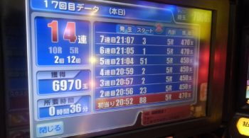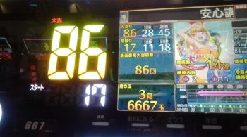 午後8時20分の段階で、70回当たりで、初当り15回目が9連、16回目が2連して41回転で空いていました。