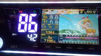 投資が、19.5Kで回収が7086玉の25.6Kでプラス6.6Kの逆転勝利でした。甘デジの「PA 海物語3R」の思いがけない、連荘に助けられました。