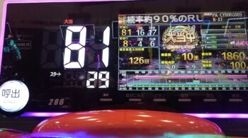 突破型なのですが、ヘソからのRUSH突入は、好調台にはよくあることです。この台の好不調は顕著で、連チャンした台は、一日中出ることが多いのです。