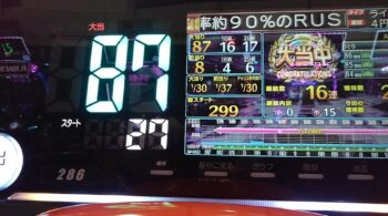 「加速RUSH OVER DRIVE」終了後の残り保留で当たるのを自身も出してきて、他人の実戦もたくさん見てきました。怪しい台です。去年の春に13連+残り電チュー保留で31連しています。