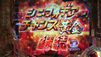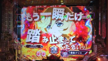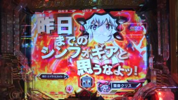 2連目はヘソ保留1個後の3回転、「最終決戦」で勝利して10R当たりでした。無事に 「シンフォギアチャンス黄金」 に突入しました。