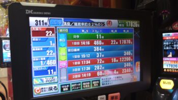 人気の降下とともに稼働も悪くなってきました。1台目で5K入れて、80回転ほど回しましたが、カスタムで「先読みチャンス」なしにしたのに、一度も「先読み」がなかったので、止めて台移動しました。