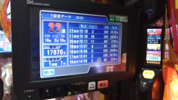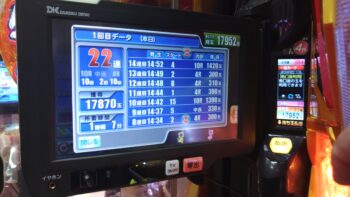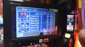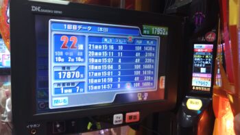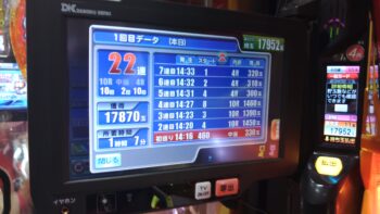 前々日18回、前日1回の台で、初当たりがまだない台で438回転で空いていました。