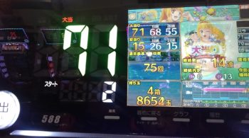 興味本位で座ってみました。2日前に14回、前日に9回当たりの稼働の悪い台だったことがうかがえます。
