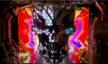 通常時に図柄が揃うと、大当たりの前に再抽選「蹂躙演出」が発生します。敵への追撃とともに図柄昇格を煽る演出が展開し、最終的に「7」図柄揃いに変化すればオーバーボーナス(ST突入濃厚)当選となります。