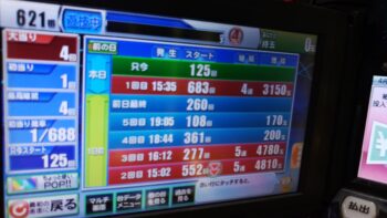 5連目は、ガセばかりと、リーチ後外ればかりで、ST120回転を駆け抜けました。まるで2連目の当たる前の様子と同じ感じでした。