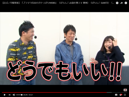 「ブラマヨ吉田のガケっぱち!#296」ヒラヤマンさんの代役にくるみんさん前編 KYORAKU公式チャンネルの「ブラマヨ吉田のガケっぱち!!#296でブラマヨ吉田さんと今回のライターのくるみんさんが「CR 必殺仕事人 豪剣Ver.」を、ゲストは「鬼越トマホーク」の金ちゃんが「CR GANTZ」を実践して出玉勝負された実践を勝手に解説します。 今回は前回と同じ大阪府布施市の巨大ホールでの実戦でした。今回の結果はどうだったでしょうか ? まずは、ライターのくるみんさんからでした。5:24辺り... 続きを読む | 今すぐシェア