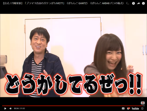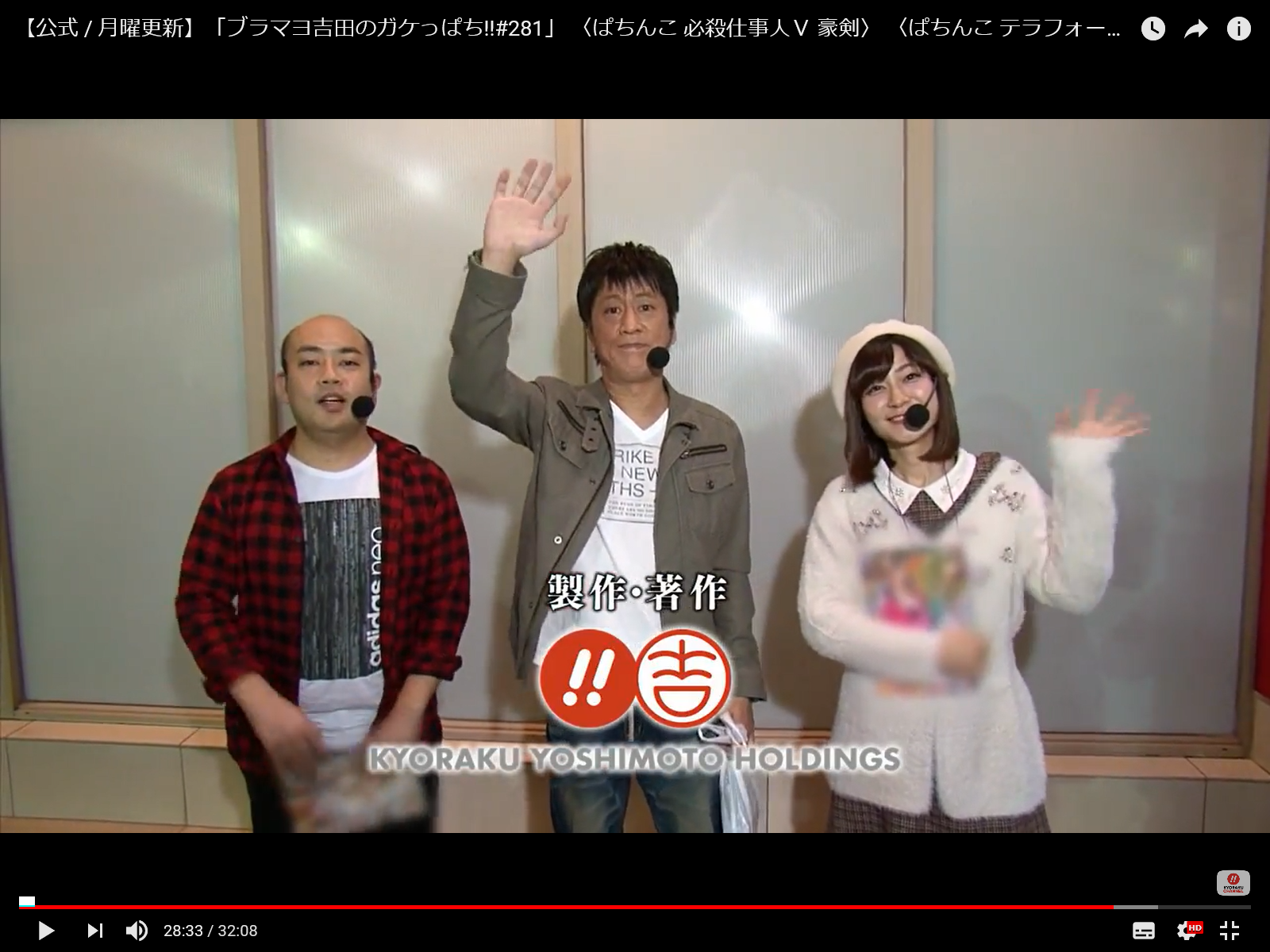 「ブラマヨ吉田のガケっぱち!#281」 MCの絶不調? KYORAKU公式チャンネルの「ブラマヨ吉田のガケっぱち!!#281でブラマヨ吉田さんとお笑い芸人の「ギャロップ」の林さんがCR必殺仕事人5 豪剣Ver.」を実践。ライターのヒラヤマンさんは「CRテラフォーマーズ」のライトミドル機で、出玉勝負されたのを解説します。 #280の後半編です。 先陣は相変わらずヒラヤマンさんでした。 6:00辺り、疑似連×3+MARS VISION「緑」→「赤」+「テラフォーマー強襲」+「人為変態」+「ミッシェル回想ムービ... 続きを読む | 今すぐシェア