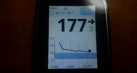 ・朝食前血糖値は高く、177mg/dlでした。
