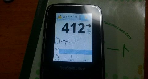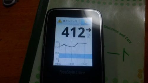 ・夕食前血糖値は高く、412mg/dlでした。