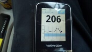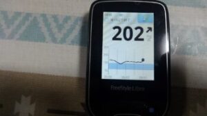 ・昼食前血糖値は高く、206mg/dlでした。(軽作業なので高血糖のままでした。)