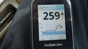 ・朝食前血糖値は高く、260mg/dlでした。(昨夕のご飯の量が多いのと油物で高血糖でした。)