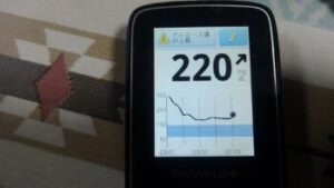 ・朝食前血糖値は高く、220mg/dlでした。(昨夕食のカロリーが高いのが分かります。)