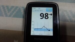 ・昼食前血糖値は低く、98mg/dlでした。(良く動いたので、血糖がよく下がりました。)