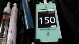朝食前血糖値も少し高く、150mg/dlでした。夕食のカロリーは、食事量を落としましたので少ないほうだと思います。