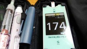 ・夕食前血糖値は高血糖で、174mg/dlでした。
